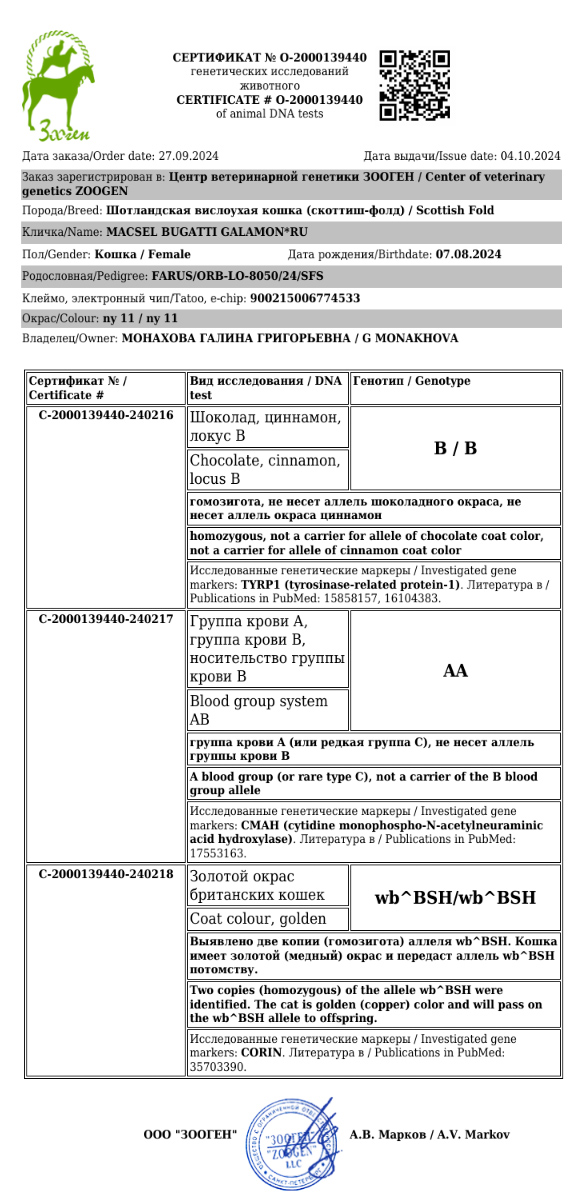 Заводчик: Монахова Г. Владелец: Монахова Г.