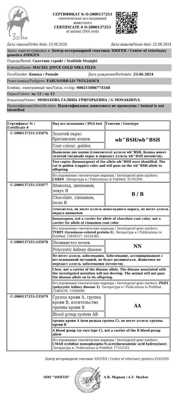 Заводчик: Наследникова С.Владелец: Монахова Г