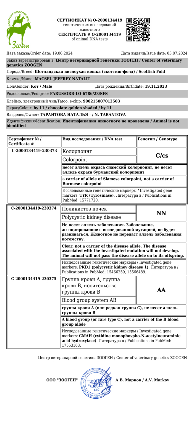 Dam: CH MacSel Jemchuzhina Galamon*RU cy 11