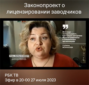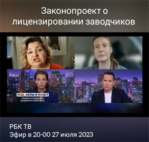 Тема беседы - Законопроект о лицензировании заводчиков . Смотеть эфир на сайте РБК