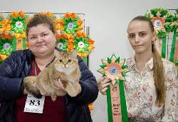 MacSel Golden Rose Galamon*RU в конкуренции стала лучшей кошкой монопородки и в финальном сравнении обошла лучшего кота - лучший взрослый монопородного шоу. Эксперт Рудакова Анна (Пенза). Также оба дня вошла в финальную десятку ВЦФ рингов в конкуренции 55!!! кошек.