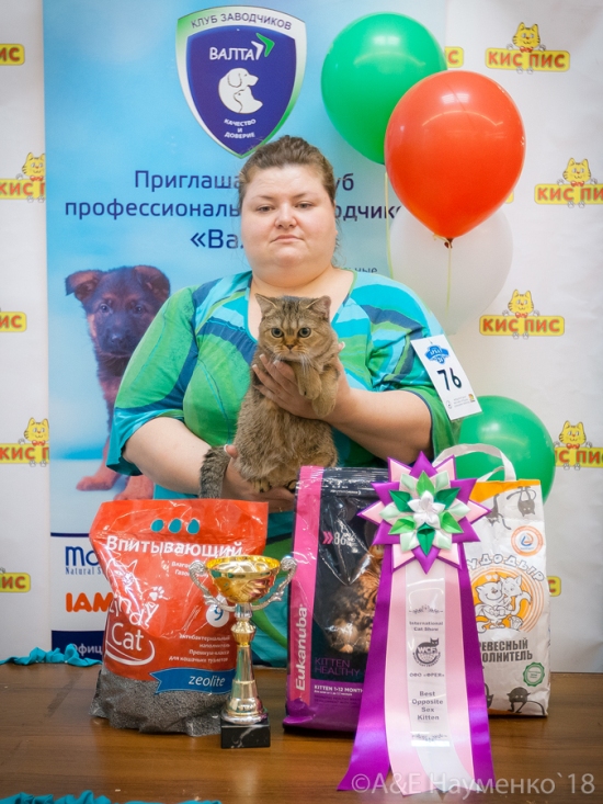 Стала лучшей в породе скоттиш страйт, второй в объединенном шоу шотландской породы (11 участников)
